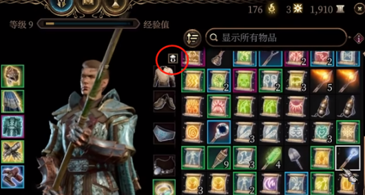 3、如果玩家不想让装备的护甲遮盖了衣服,那么可以打开角色的背包,点击这个按钮就可以在不卸下护甲的情况下优先显示衣服。