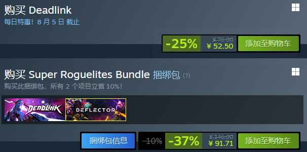 死链在Steam平台原价为70元,首发特惠售价为52.5元,购买捆绑包只需要91.71元。